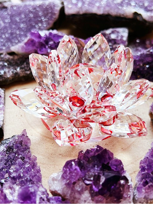 Flor de Lotus de vidre de Feng Shui - Vermella
