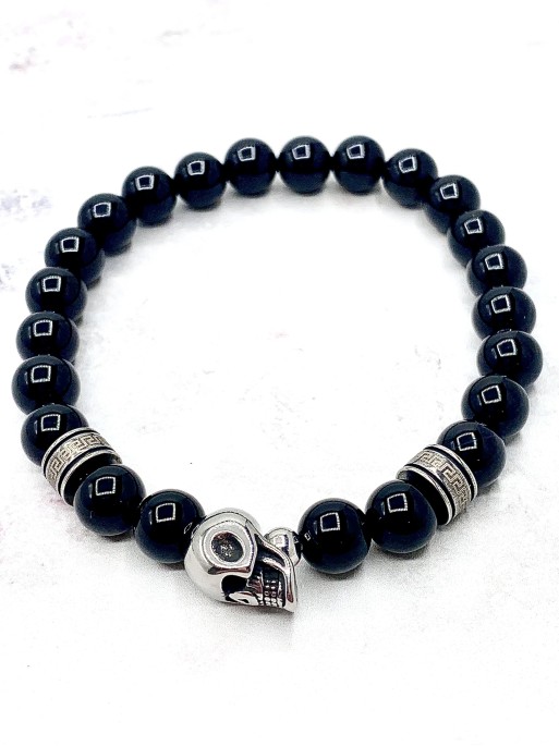 Polsera 'Owen' de Turmalina negra 8mm | Protecció extrema. Material: Acer Inoxidable (316L). Bola 8 mm.
