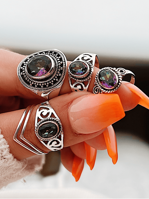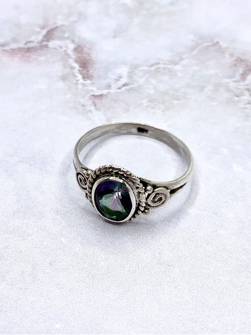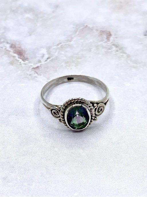 L'anell Aurea és un anell finit elaborat de Plata de Llei 925 i Topazi Místic. És fi i elegant, però alhora cridaner i especial. Té un disseny de plata fet a mà i minimalista centrat en ressaltar el preciós Topazi Místic com a element principal. És ideal tant per portar-sol com en combinació amb altres anells finits o grans. Prova a fer els teus propis looks, t'encantarà!