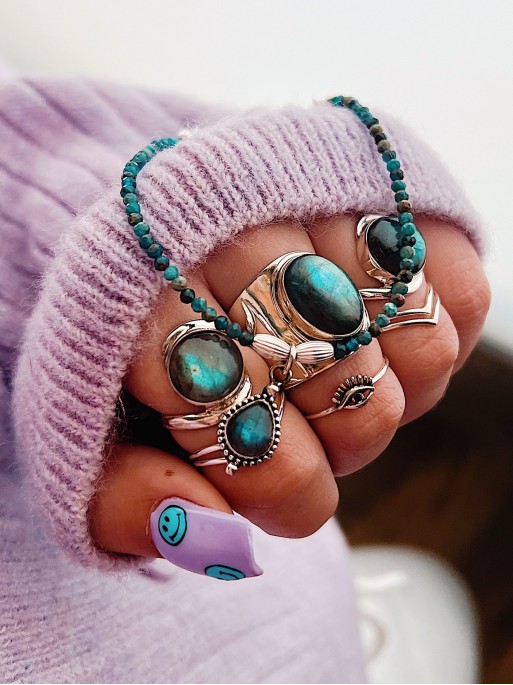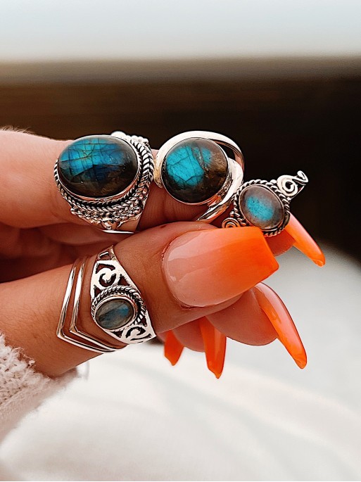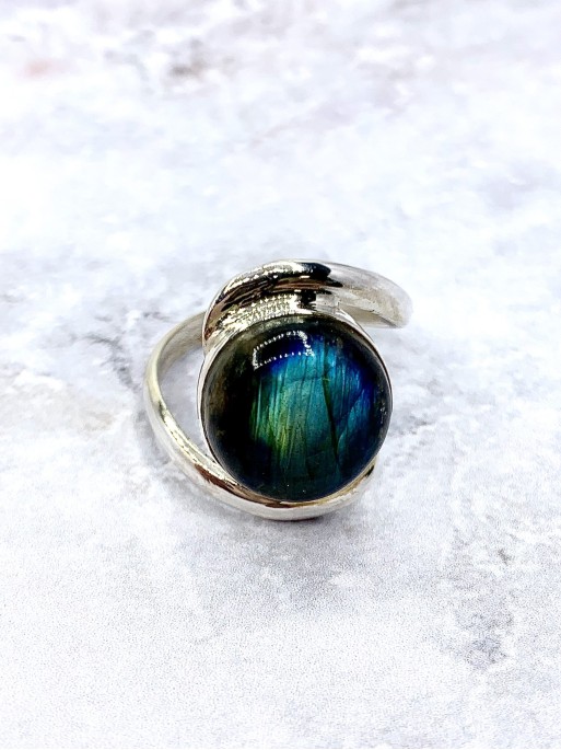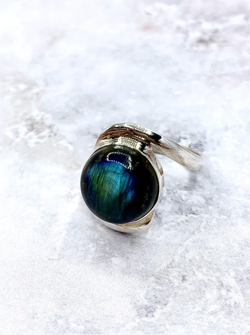 Anell 'Ayla' de Labradorita. Grandària: 2 cm x 2 cm. Material: plata de llei.