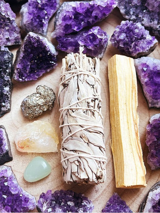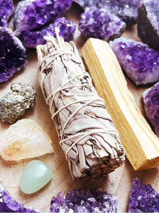 -Lligat de Salvia Blanca: Purifica de manera eficaç els entorns i els amulets o minerals. Té múltiples beneficis a nivell de salut, ja que aporta curació física i protecció. En cremar-la, la sàlvia allibera ions negatius i ajuda a neutralitzar els ions positius. Aquesta característica permet millorar la qualitat de l'aire i, com a conseqüència, atenuar algunes afeccions com l'asma o algunes al·lèrgies.