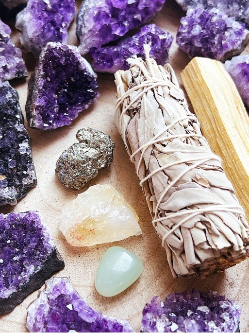 Què inclou el pack de prosperitat, èxit i abundància? Inclou un Sahumeri de Salvia Blanca Californiana, un tros de Pal Sant natural, una pedra en brut de Citrí i Pirita, un rodat de Jade, una bosseta de cotó/lli perquè puguis guardar el teu bonic lligat i un mini fullet informatiu.