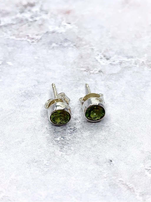 Arracades 'Indira' mini d'Olivina. Material: plata de llei. Mida: 50 mm.