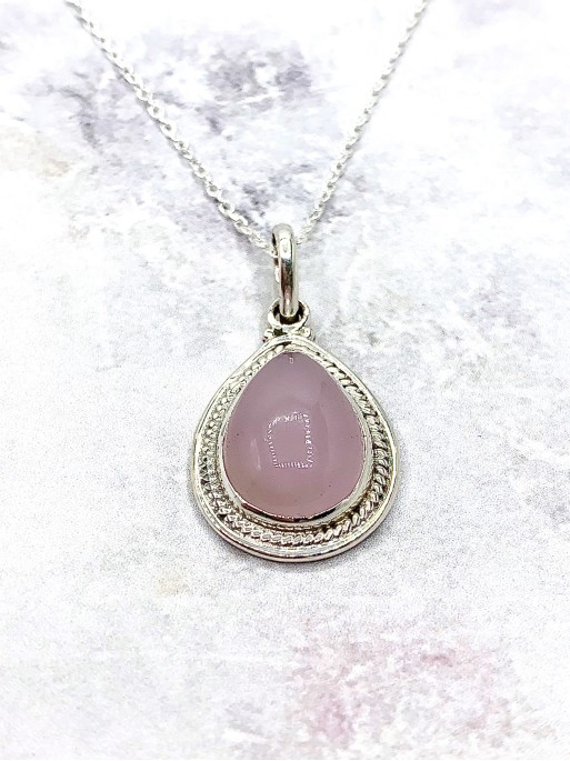 Collaret 'Amazones' de Quars rosa. Material: plata de llei. Mida: 2,5 cm llarg x 1,5 cm ample.