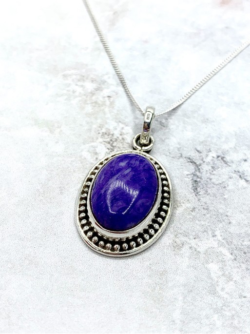 Collaret 'Carolina' de Charoita. Grandària: 2,6 cm x 1,8 cm. Material: plata de llei.