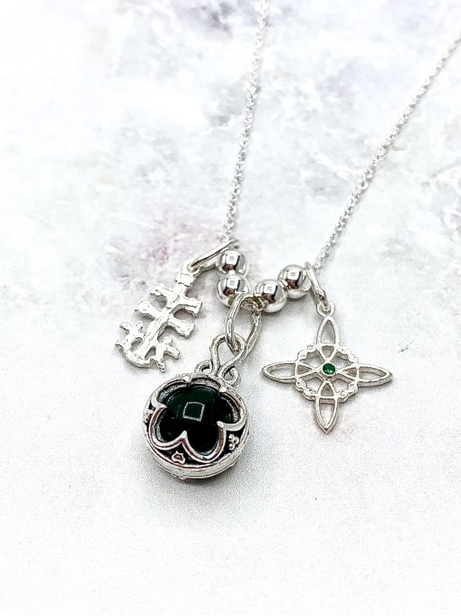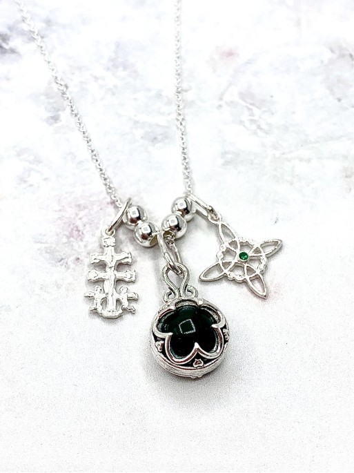 Collaret Triple Protecció de Plata – Nus de Bruixa, Tetragramató i Obsidiana...