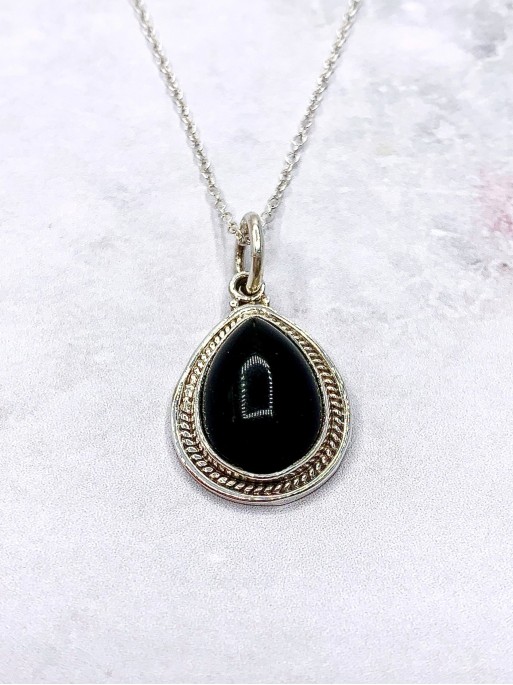 Collaret 'Amazones' d'Ònix. Material: plata de llei. Mida: 2,5 cm llarg x 1,5 cm ample.