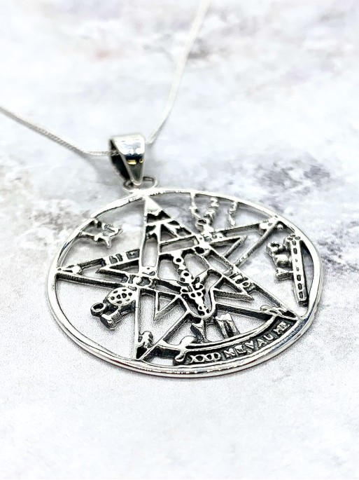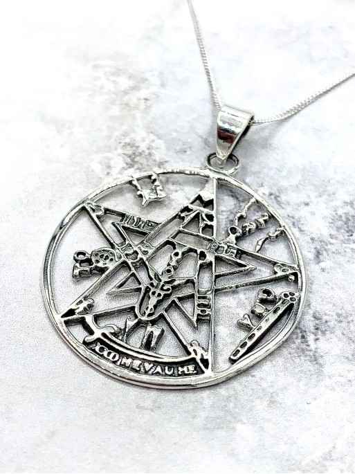 El nostre Tetragramató està elaborat de Plata de Llei 925. Està fet a mà i treballat minuciosament, recrea perfectament el símbol, no n'hi falta cap detall. Pots triar entre les nostres opcions, una fina cadena de plata de 40-45 cm de llargada, o un cordó negre ajustable súper resistent.