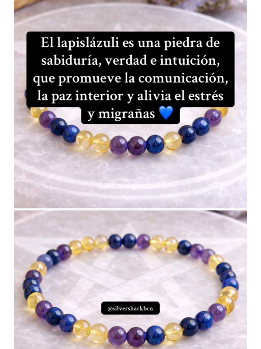 🔮 Polsera Signe del Zodíac Lliura portal intuïció de Citrí, Ametista i Lapislàtzuli 6mm 🔮 Poders psíquics
