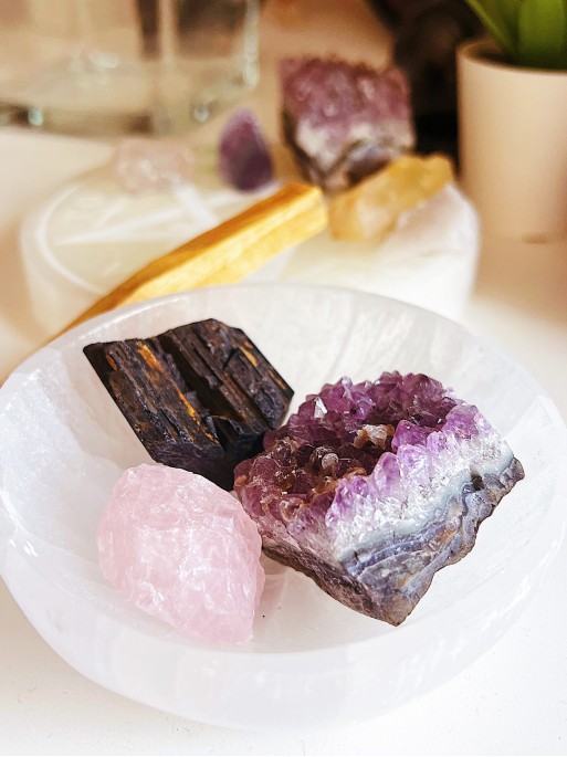 S'utilitza per netejar o recarregar altres minerals i gemmes, només has de dipositar els teus minerals i pedres dins del bol. També pots utilitzar-lo de decoració o per col·locar-hi les teves joies preferides. La selenita simbolitza la puresa espiritual, infon pau profunda i es recomana per a la meditació.