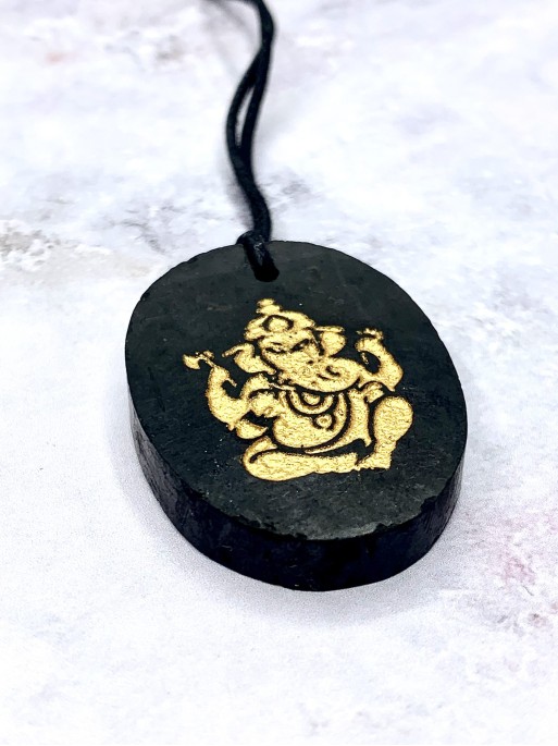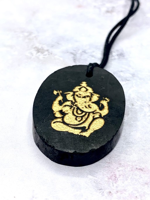 Collaret 'Nakia' de Shungit natural. Material: pedra natural. Simbologia: Ganesha. Mida: 4 x 3 cm.