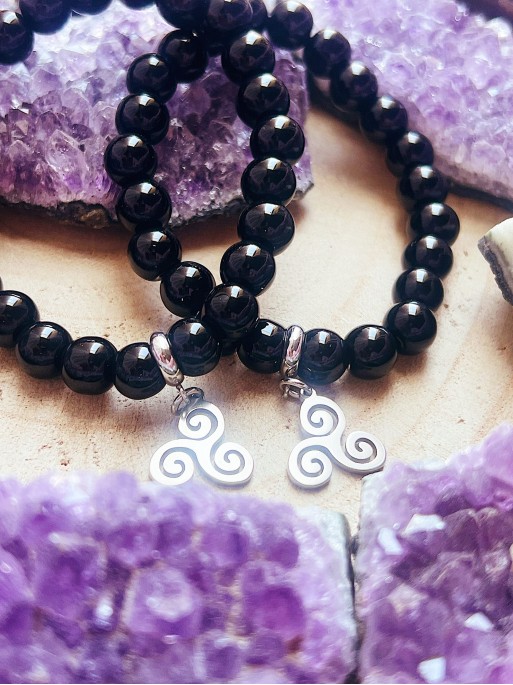 • Polsera 'Asha' d'Ònix negre amb Trisquel 8mm | Protecció i mal d'ull