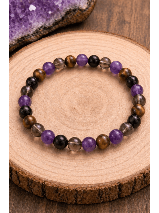 🔮 Polsera Portal Obridor de Camins de Turmalina, Quars Fumat, Ull de Tigre i Ametista 8mm