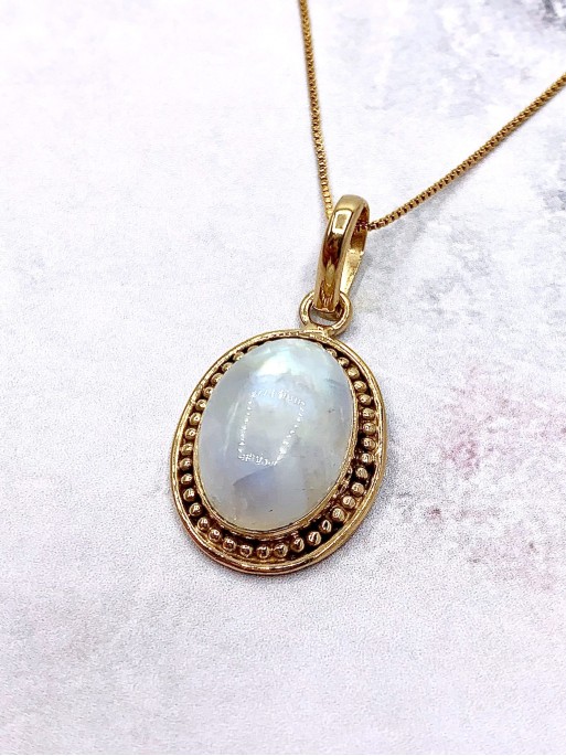 Collaret 'Carolina' d'or i Pedra lluna. Material: xapat en or pur de 24k i 2 micres de gruix.