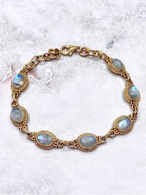 Polsera 'Carolina' d'or i Pedra lluna. Material: xapat en or pur de 24k amb 2-3 micres de gruix.