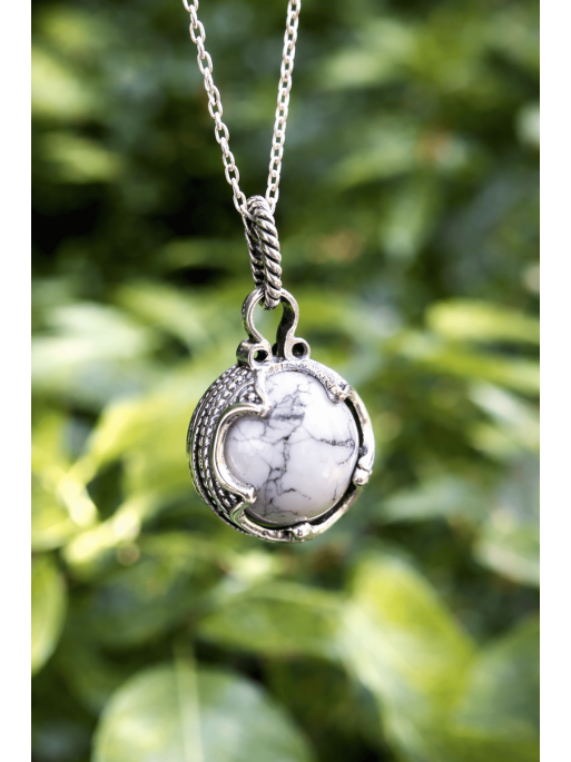 La Howlita és coneguda per les seves poderoses propietats calmants i harmonitzadores. És una pedra ideal per a qui busca pau interior, equilibri emocional i claredat mental. Portar aquest collar a prop del cor potencia la meditació, la introspecció i la connexió amb la pròpia intuïció, oferint un refugi de serenitat en la vida quotidiana.