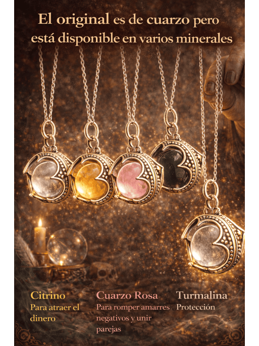 Aquesta joia no és només un accessori, sinó un talismà poderós. Segons la llegenda, aquesta peça pertanyia a un mag molt poderós que utilitzava aquests amulets per incrementar el seu poder màgic, concentrar, protegir i amplificar la seva energia vital. Es diu que el collar ofereix força, protegeix davant dels enemics, allunya energies negatives, enveja i màgia negra, i ajuda a desfer encanteris o treballs de màgia com amarres o allunyaments.