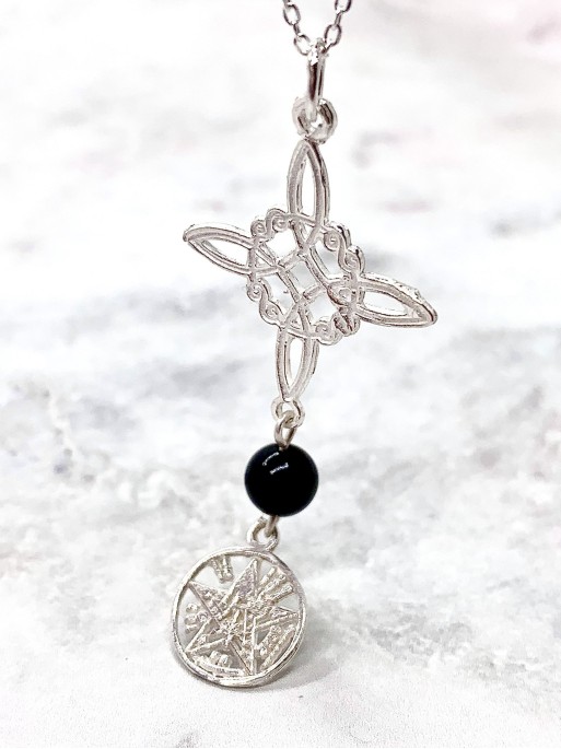 Triple protection silver necklace: Witches Knot and Tetragrammaton. Mineral: Black tourmaline. Material: sterling silver