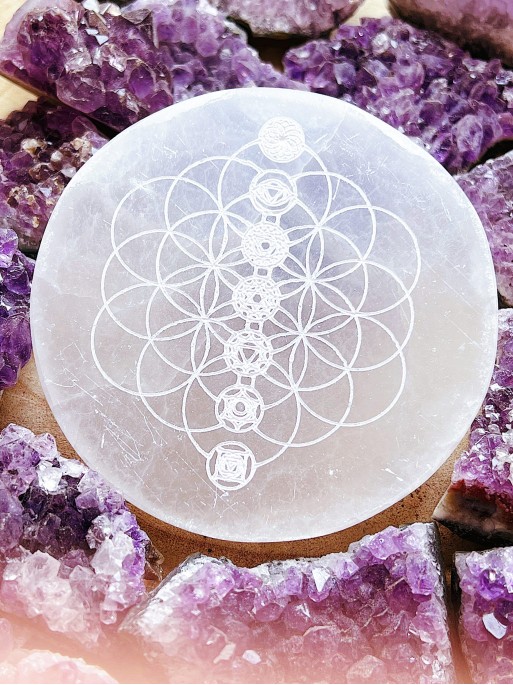 Natural Selenite Plate with engraved the 7 Chakras
