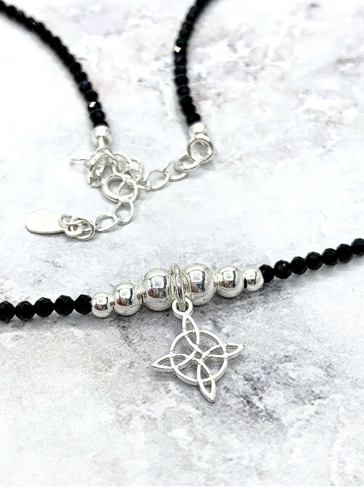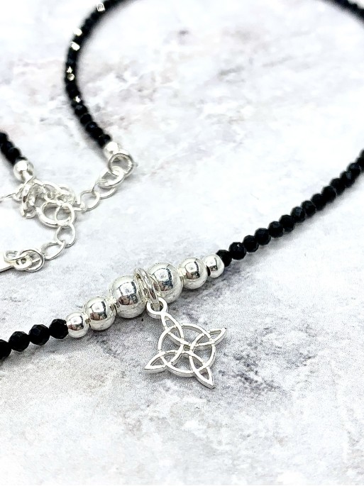 Our symbology necklace of the famous Witches Knot, is made entirely of 925 Sterling Silver and surrounded by black Onyx balls, made 100% by hand. It has an ideal size, adjustable and comfortable. It is super cute and striking. It has a unique style, you can adjust and adapt it as you like, more choker or necklace style, as you prefer.