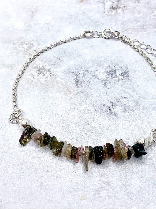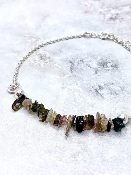 The Sundari bracelet is an ethnic bracelet with a very beautiful style. It is made of 925 sterling silver and natural stone. The multicolored Tourmaline has several striking colors, it looks spectacular both in summer and winter. Its design is completely handmade and consists of pieces of natural stone and pieces of silver. Its measurement is prepared so that it is suitable for all types of sizes, both for very finite wrists, and thicker ones using the extender. It is a very comfortable bracelet, and very safe as it has a loop closure.