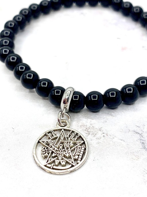 “Elly” Bracelet – Black Tourmaline & Tetragrammaton 6 mm – Powerful Protection & Energy Shield