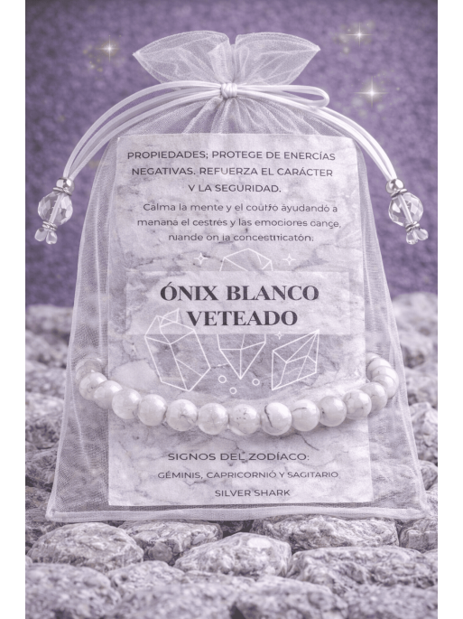 White streaked Onyx 'Asha' bracelet 8mm | Protection and purification