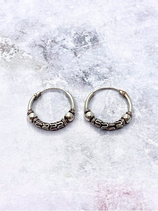 Bali 'Goa Gajah' earrings. Size: 15mm. Material: sterling silver.