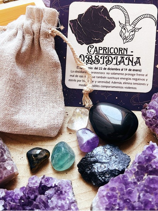 • Kit of 6 horoscope stones: Capricorn - Obsidian