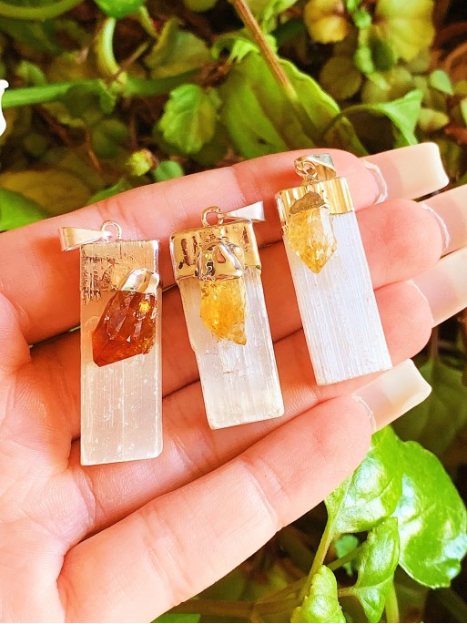 The Selenite pendant is a necklace made of raw natural stone. Selenite is a moonstone. Its fine vibration provides mental clarity, opening the crown and upper crown chakras, enhancing channeling and connection with spiritual guides. It is a stone that instills enormous peace and is excellent for meditation and spiritual work, allowing one to connect with past lives. As a moonstone, it has all the properties of the stones called the Moon: it is of great help to healers who practice auric vision.