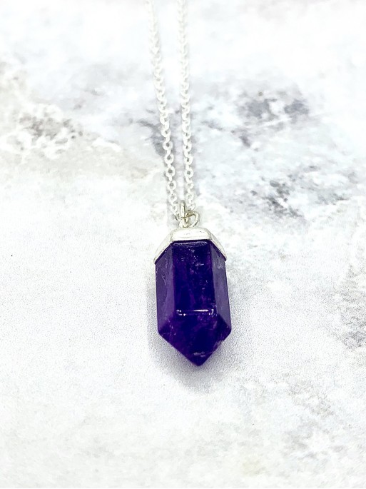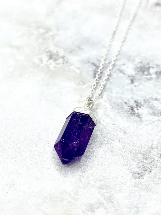 Amethyst 'Aishani' necklace. Size: 2 cm x 0.8cm. Material: sterling silver.