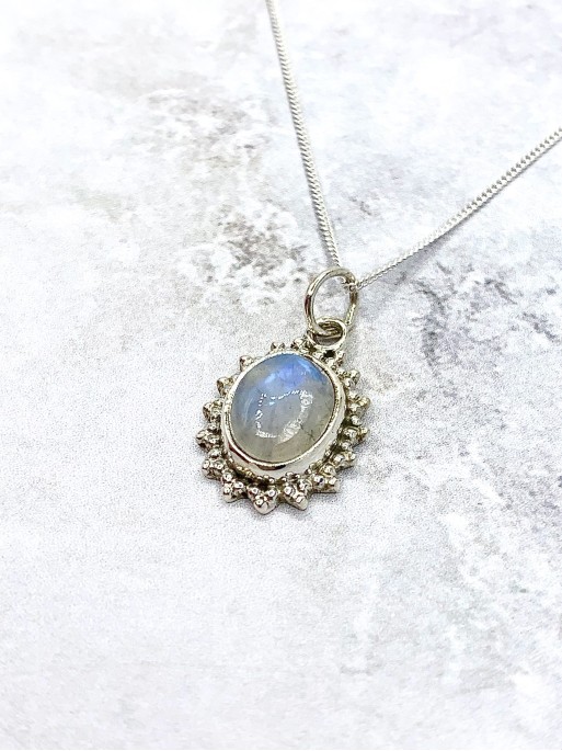 Moonstone 'Kinari' necklace. Material: sterling silver. Size: 2cm long x 1.8cm wide.