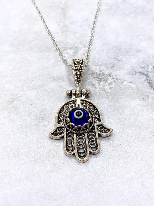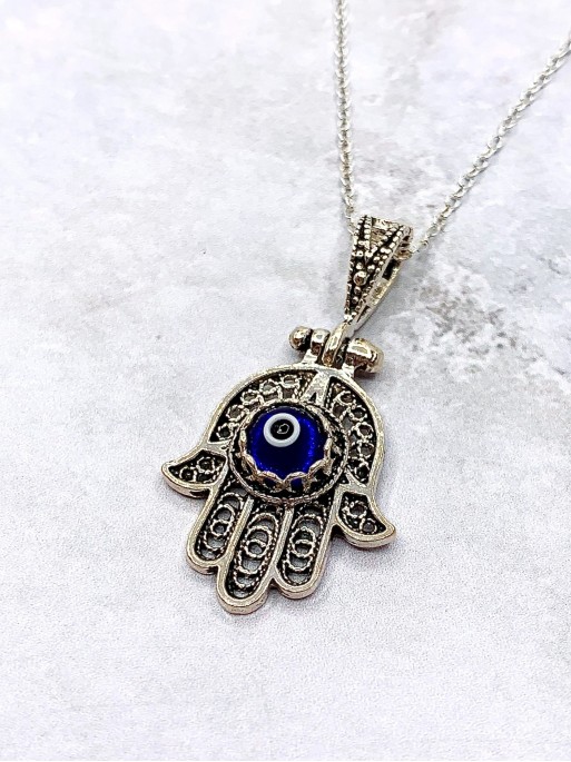 'Hand of Fatima' necklace with Turkish Eye. Material: sterling silver.