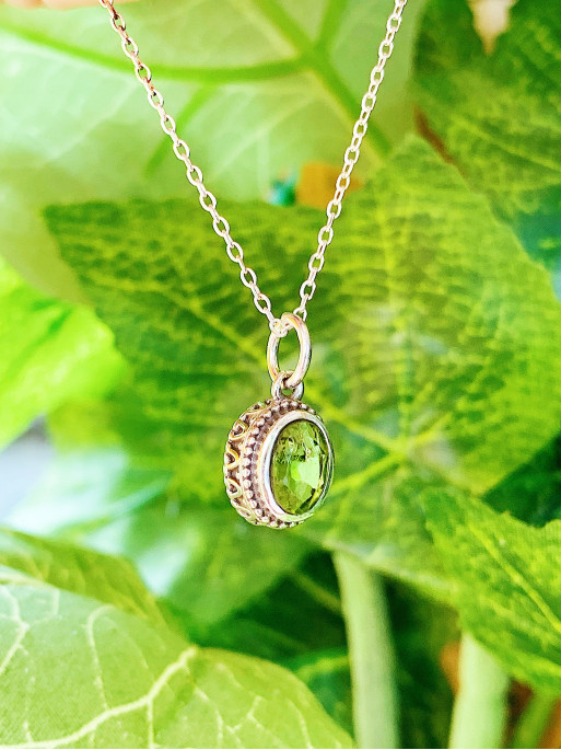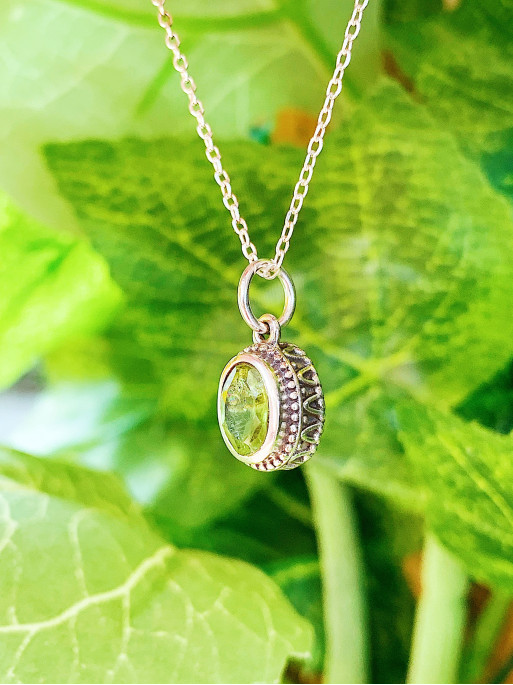 Wearing a silver necklace with olivine is more than just a style statement: it is a way to connect with the energy of the sun and nature, integrating its properties into your daily life. This stone helps dispel fears and emotional blockages, offering clarity and serenity during moments of uncertainty or stress. Those who wear olivine close to the heart are said to experience deep emotional harmony, freeing themselves from tension and negative thoughts that limit their well-being.