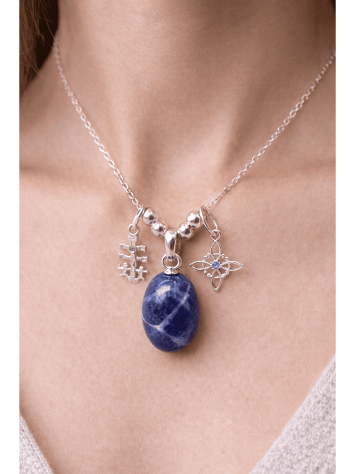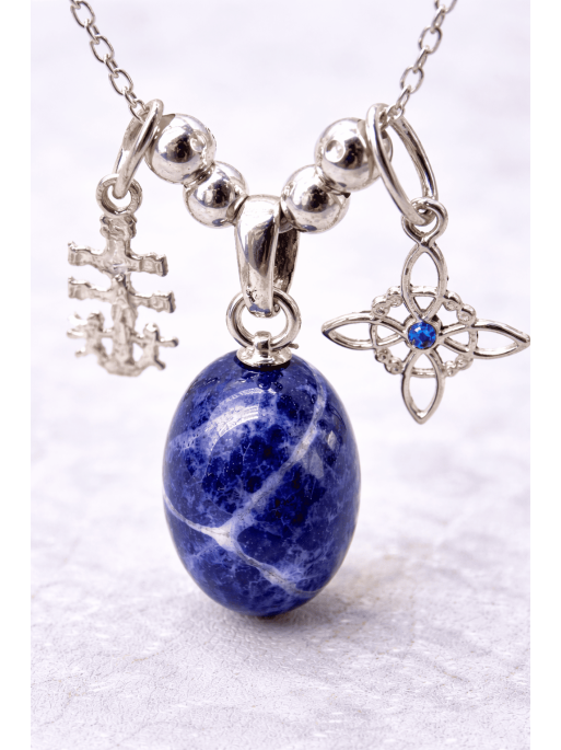 The Triple Protection Sodalite Necklace is designed as a powerful energetic amulet for those who need mental clarity, emotional balance and spiritual strength during periods of intellectual effort, intensive study, exam preparation or competitive examinations.