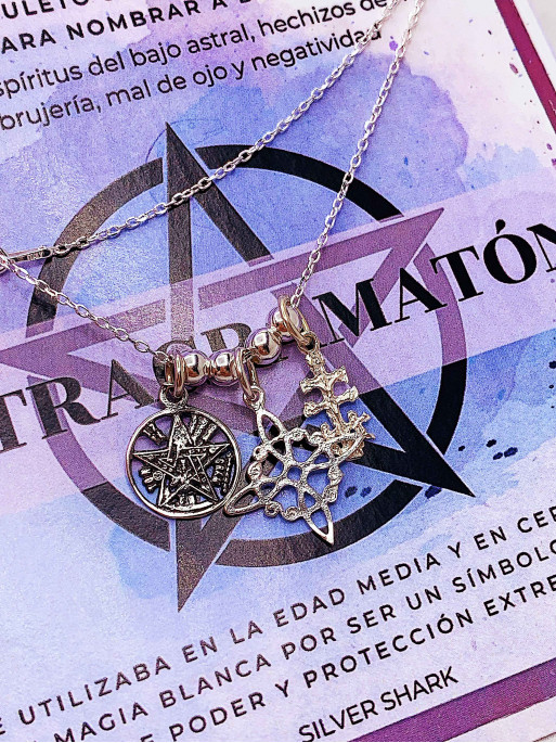 • Triple protection silver necklace: Witch's Knot, Caravaca Cross and Tetragrammaton