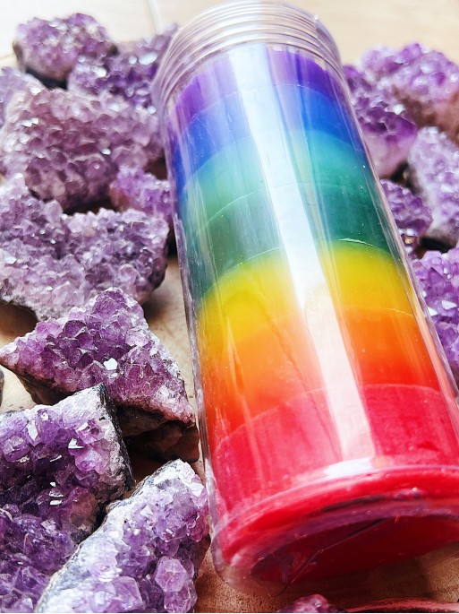 The 7 chakra candle is a symbol deeply rooted in esoteric and spiritual traditions that work with the chakra system, originating in India. Each of the colors of the candle represents one of the seven main chakras of the human body, which are spiritual energy centers. The symbolism of this candle is derived from the characteristics and properties associated with each chakra, and the act of lighting the candle can be seen as a gesture of intention to harmonize and balance these energies.