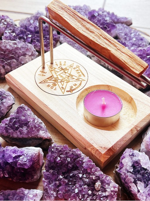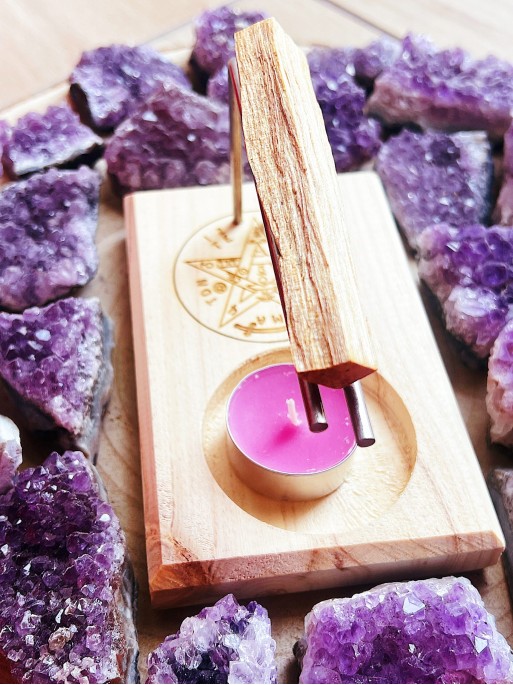 A Lignum vitae candle burner serves several purposes, combining the practical aspects of burning palo santo in a controlled and safe manner, with the spiritual and aromatic benefits associated with using this sacred wood. Here I detail some of its main uses and benefits: