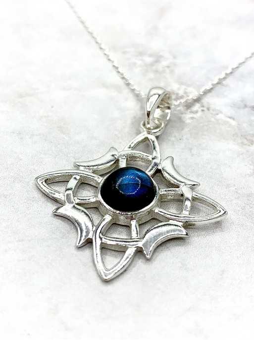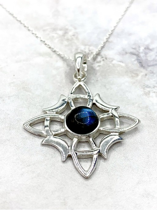 Witches Knot and Labradorite 'Wanda' necklace. Size: 3.5cm x 2.7cm. Material: sterling silver