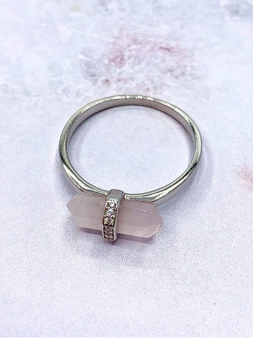 El anillo Elika es un anillo súper bonito, fino y elegante. Está elaborado de Plata de Ley 925 y posee una punta de cuarzo natural: Cuarzo rosa. Además, en su diseño incorpora unas preciosas Circonitas alrededor de la piedra, talladas a medida especialmente.