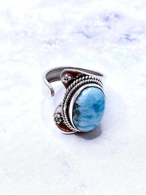 Anillo “Sendero de Mineral” de Larimar – Paz, Comunicación y Armonía Interior