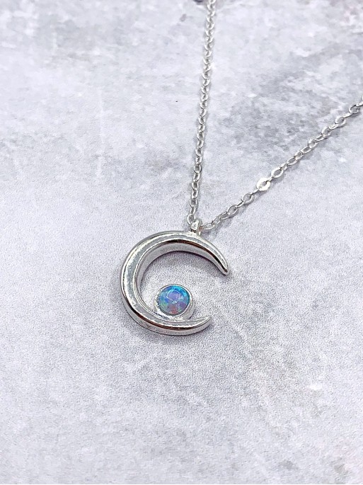 El collar Aditi es un collar único y súper especial. Está elaborado de Plata de Ley 925 y hecho a mano con mucho amor. Su diseño consta de una media luna con una bonita piedra de Ópalo natural. Incluye una fina y elegante cadena ajustable de plata, la cual puedes poner cortita tipo choker a 40 cm, o más larga como collar a 50 cm.