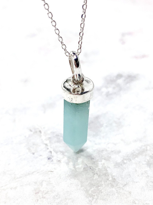 El collar de punta de Amazonita es un collar súper bonito. Está hecho de Plata de Ley 925 y destaca el precioso color verdoso veteado de la Amazonita natural. Su diseño está inspirado en las puntas de Cuarzo natural, talladas y pulidas y decoradas con un fino y elegante diseño de plata. Es un collar con un estilo muy bonito y natural.