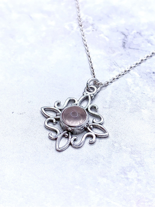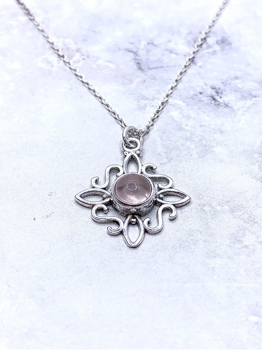 Collar 'Sabrina' de Nudo de Brujas y Cuarzo rosa. Tamaño: 2,5 cm. Material: plata de ley