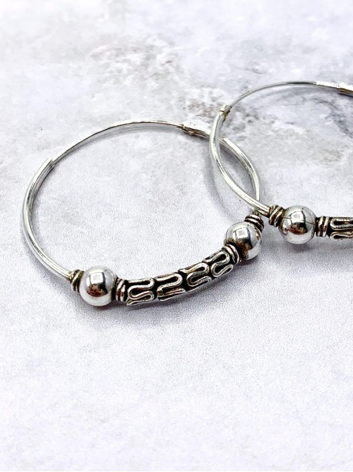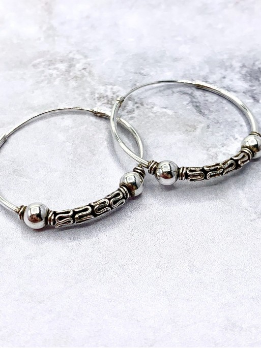 Aros Bali 'Goa Gajah'. Tamaño: 26 mm. Material: plata de ley.