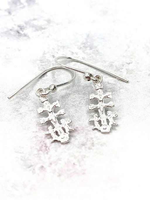 Pendientes de Cruz de Caravaca de plata | Protección. Tamaño: 1,8 - 2 cm. Material: plata de ley.