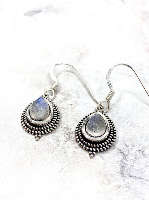 Pendientes 'Jivika' de Piedra luna. Tamaño: 3-2 cm. Material: plata de ley