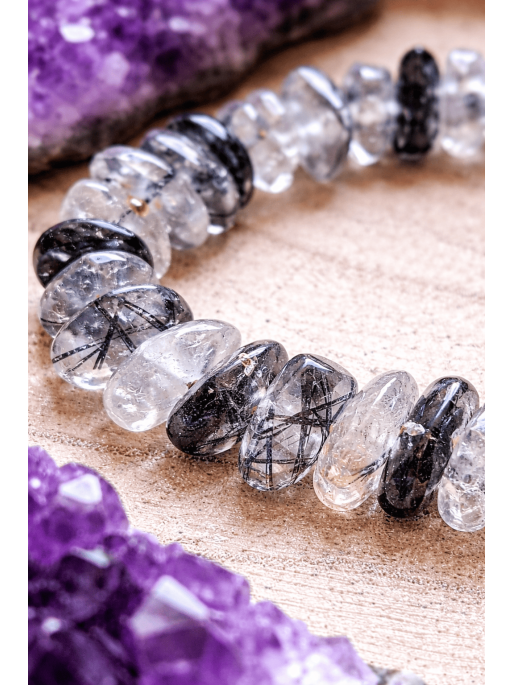 El Cuarzo Turmalinado es conocido por combinar las propiedades amplificadoras del cuarzo con la fuerza protectora de la turmalina negra. Esta fusión convierte a la pulsera en un auténtico escudo energético que ayuda a bloquear y transmutar energías negativas, limpiar el aura y aportar claridad mental en momentos de estrés o sobrecarga emocional.