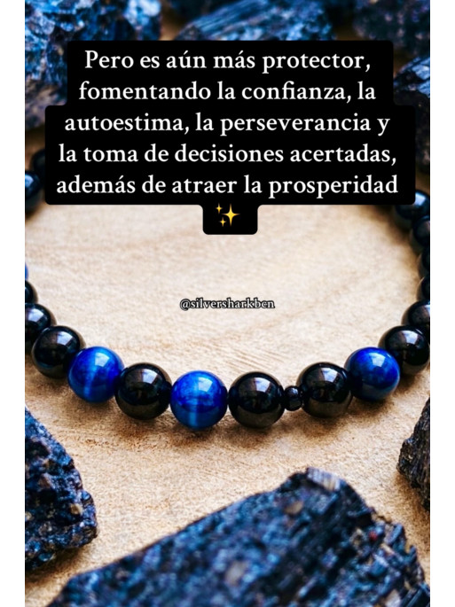 La unión del Ojo de Tigre Azul y la Turmalina Negra crea una pulsera de protección integral:
