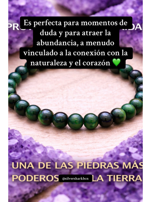 Esta pulsera ha sido creada como un auténtico amuleto de protección y buena fortuna, combinando dos piedras de gran poder energético: el Ojo de Tigre verde y la Turmalina negra. Una joya fina y elegante de bolas de 6 mm, ideal para llevar a diario y mantener su energía siempre contigo.